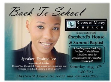 Shepherd's House launched our first back2School Giveaway, which is now an annual event. This initiative supports academic readiness. The first Back2School Giveaway was held in conjunction with Rivers of Mercy Church, situated in a neighborhood known for high levels of poverty, a high dropout rate and high crime. The Back2School Giveaway was attended by kids from first grade through high school and their parents.